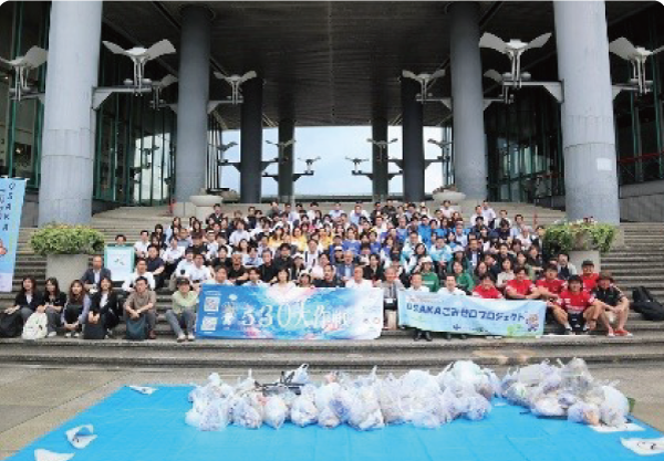 2025年5月の「ごみゼロアクション!~大阪春の陣~」では、164人で15Lごみぶくろ約100ふくろ分のごみを集めたよ!