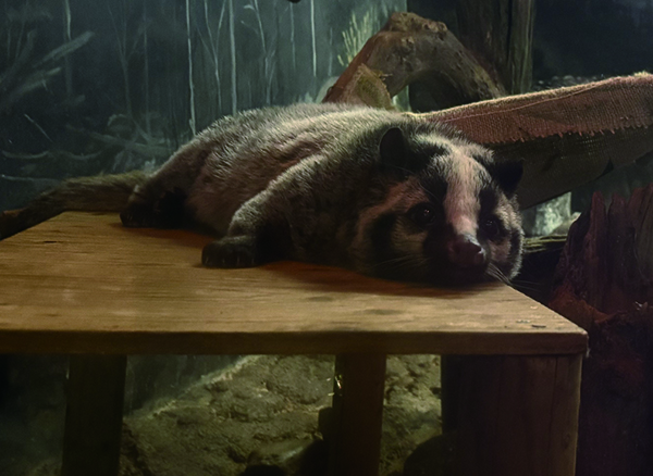 ハクビシンは、漢字で書くと「白鼻心(白鼻芯)」。名前の通り頭から鼻筋にかけて白い線が特徴で、顔の真ん中を1本しんが通っているかのようです。中国南部から東南アジア、日本などに生息するジャコウネコ科の哺乳類で、天王寺動物園ではオスの「ぱむ」が夜行性動物舎で生活しています。