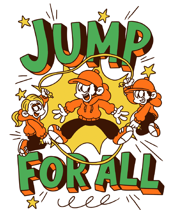 なわを回す人は「ターナー」、とぶ人は「ジャンパー」と呼ばれ、チームでリズムやタイミングを合わせながら技を決めるよ。1人ではなく仲間といっしょにとぶから楽しいし、チームワークや集中力、リズム感が自然と身に付くスポーツだよ。