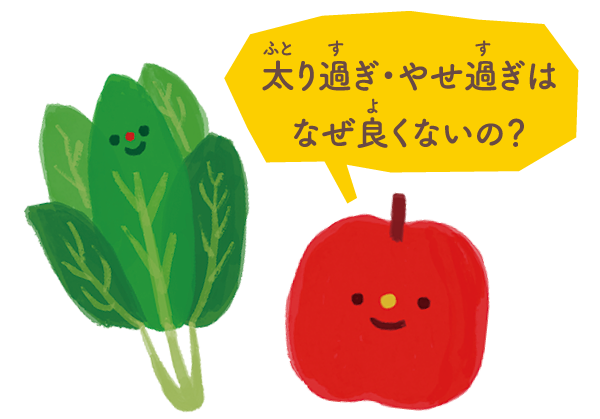 みんなの体は健康的に大きくなっているかな? 「太り過ぎ」や「やせ過ぎ」にならないために、 どうしたら良いか いっしょに見てみよう。