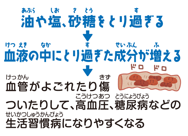 肥満は重過ぎるリュックをずっと背負っているようなもので、体に負担がかかってしまうよ。子どものころからの肥満は大人になってからも治りにくいので、今から生活習慣を整えよう。
