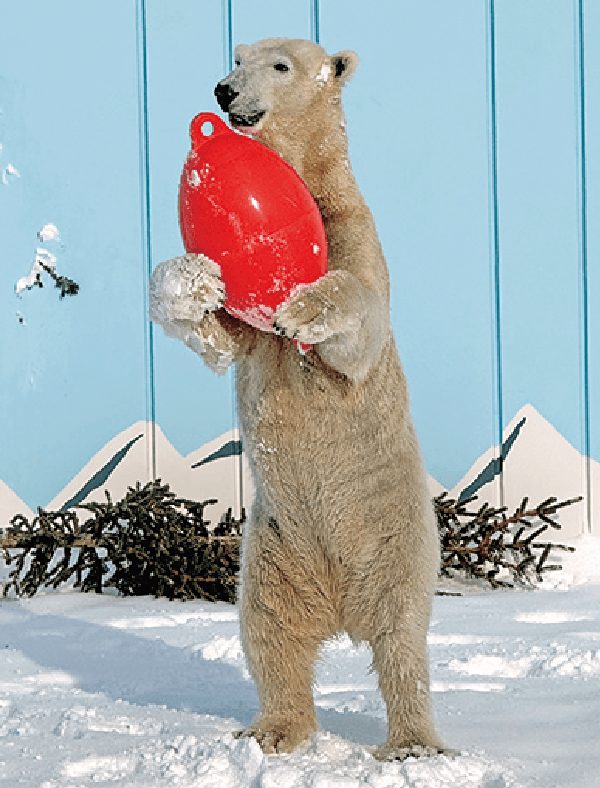 生きるために海を泳ぐ必要があり、特別な体形をしています。動物園でヒグマと見くらべてみてください。ヒグマよりも首が長くて頭が小さいです。この体形のおかげで、水の中をスイスイ泳げて、せまい氷の穴にも顔を入れて、えさとなるアザラシなどをつかまえやすいそうです。