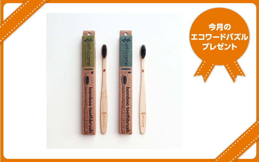 【エコワードパズルプレゼント】「ethicame『バンブー歯ブラシ』リーフ・魚の焼き印付き2本セット」8名様