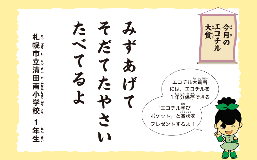 エコチル大賞者には、エコチルを1年分保存できる「エコチル学びポケット」と賞状をプレゼントするよ!
