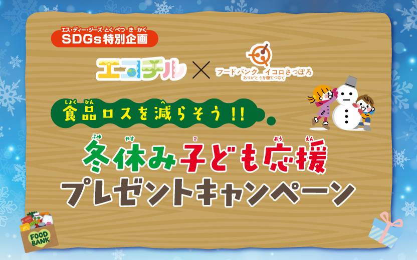 - [エコチル×フードバンク イコロさっぽろ]食品ロスを減らそう!!冬休み子ども応援プレゼントキャンペーン