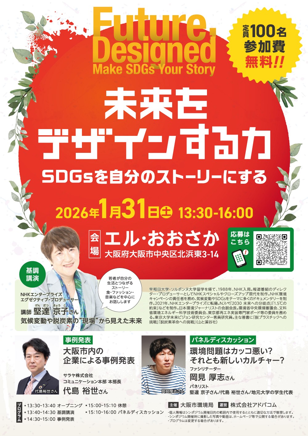 アドバコム(エコチル編集部)は、大阪市環境局主催「未来をデザインする力 ─ SDGsを自分のストーリーにする」シンポジウム(1月31日開催)と連携し、高校生以上の学生を対象に「エコチル学生記者プロジェクト」 を実施します。