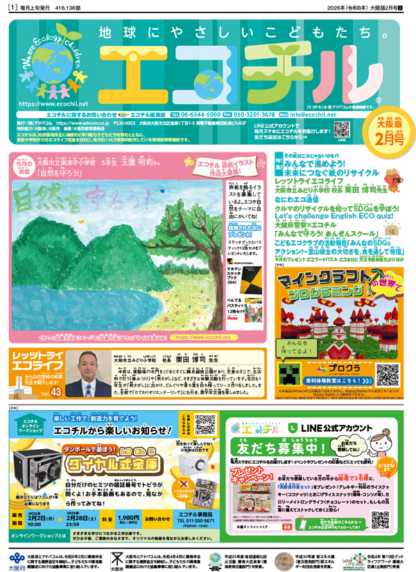 今月の巻頭特集は、 「その紙はごみじゃないかも!?みんなで進めよう!未来につなぐ紙リサイクル」 「地球に優しい車と運転って何!?ZEVとエコドライブで未来を守ろう」です。