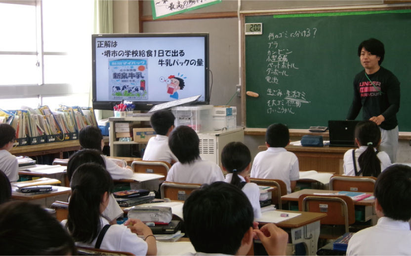 堺市では牛乳パックのリサイクルで環境について学んでいます